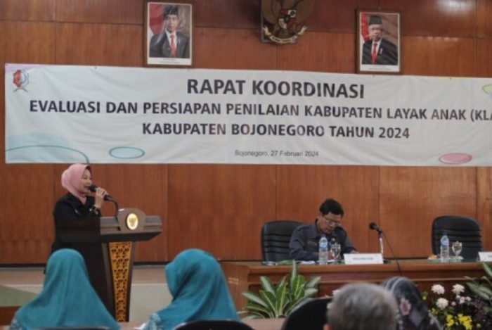 SURABAYATODAY.ID, BOJONEGORO – Pemerintah Kabupaten Bojonegoro melalui Dinas Pemberdayaan Perempuan, Perlindungan Anak dan Keluarga Berencana (P3AKB) menggelar rapat evaluasi dan persiapan penilaian Kabupaten Layak Anak (KLA) Kabupaten Bojonegoro tahun 2024, Selasa (27/2). Rapat yang digelar di ruang Angling Dharma, gedung Pemkab tersebut, menargetkan Bojonegoro naik predikat dari madya menjadi nindya.