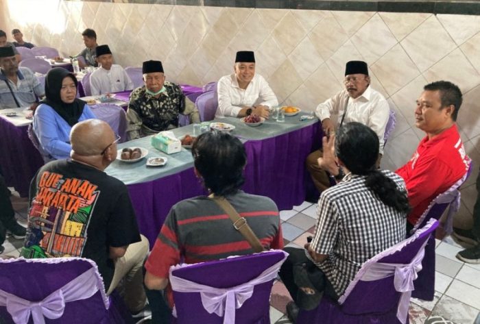 SURABAYATODAY.ID, SURABAYA – Wali Kota Surabaya Eri Cahyadi menggelar pertemuan dengan tokoh masyarakat di Jalan Bolodewo No.107, Kecamatan Semampir, Jumat (8/3). Di kesempatan ini, Eri duduk bersama membahas penataan pedagang kaki lima (PKL) yang berjualan di kawasan wisata religi Sunan Ampel.