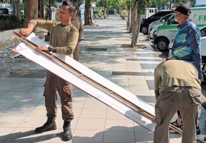 SURABAYATODAY.ID, SURABAYA –Pemkot Surabaya melalui Satpol PP Surabaya secara masif melakukan penertiban papan reklame insidentil maupun permanen, Jumat (22/3). Penertiban itu dilakukan dengan membongkar objek reklame yang tak berizin dan melanggar aturan.