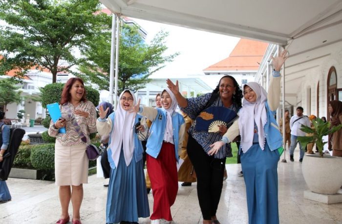 Tim UNICEF di sela kunjungan di Alun-Alun Surabaya.