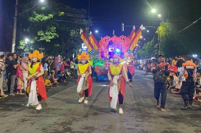 Diawali dengan pemukulan alat musik oklik (alat musik dari bambu), puluhan regu bergantian unjuk kebolehan di depan juri. Kemudian, peserta melanjutkan perjalanan melewati rute Jalan P. Mas Tumapel (start) – Imam Bonjol – Mastrip – MH. Thamrin – Panglima Sudirman – AKBP M. Soeroko – Imam Bonjol – P. Mas Tumapel (finish).