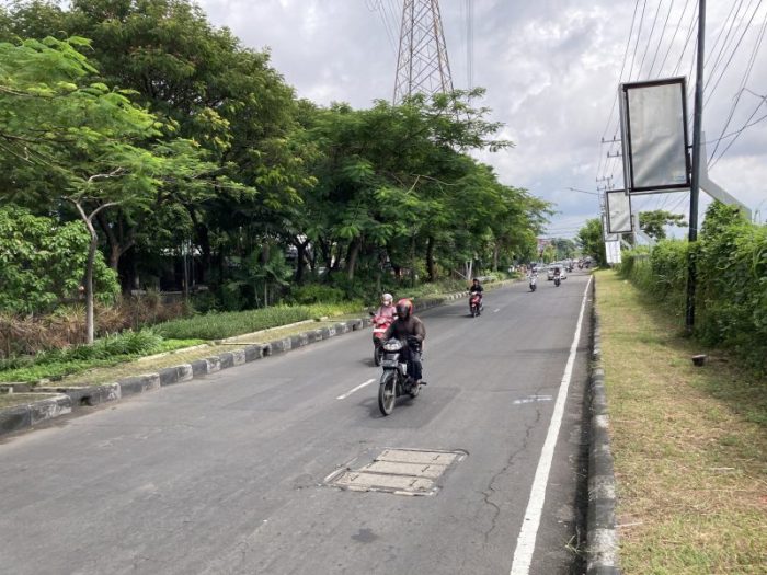 “Pertigaan setelah traffic light itu kan ada dua jalur yang dipisahkan dengan median jalan. Nah, untuk jalur yang mengarah ke traffic light MERR itu akan dilakukan peninggian jalan (pengaspalan). Sedangkan di jalur sebelahnya, itu dilakukan rigid (betonisasi) sepanjang kurang lebih 50 meter,” kata Adi, Selasa (23/4/2024).