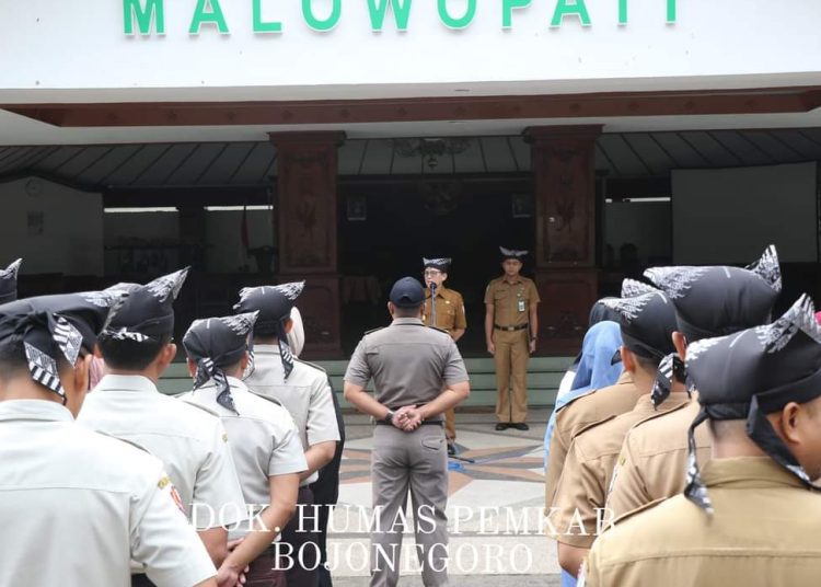 SURABAYATODAY.ID, BOJONEGORO – Kompak memakai kebaya dan udeng Samin, para pegawai di lingkup Pemerintah Kabupaten Bojonegoro, baik ASN maupun non ASN, mengikuti apel pagi, Senin (22/4). Pakaian tradisional dan udeng Samin ini dalam rangka memperingati Hari Kartini.