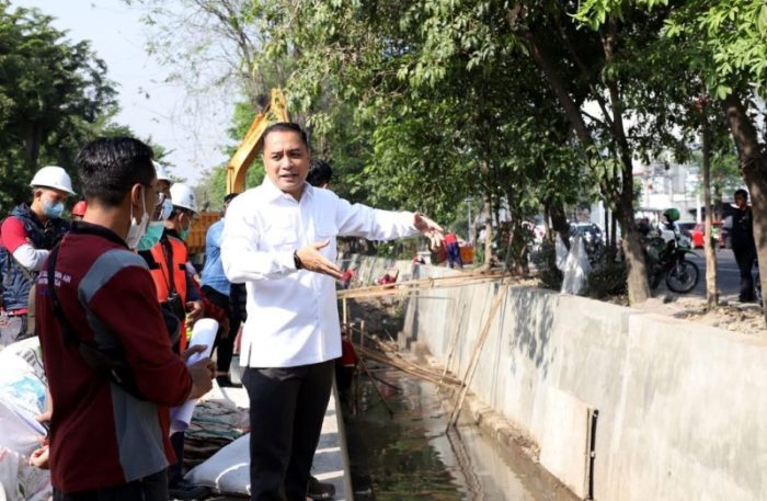 “Untuk prioritas penangan banjir dan genangan ini, kita melanjutkan pembangunan saluran diversi Gunungsari yang sekarang pada tahapan lelang, ini diharapkan bisa menyelesaikan persoalan. Minimal mengurangi problem banjir dan genangan di kawasan Surabaya Barat,” terangnya.