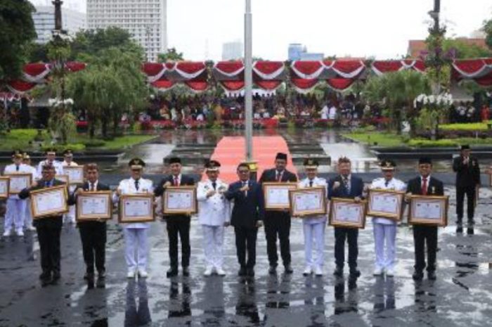 Meskipun rintik hujan menyertai upacara pagi itu, namun tak menyurutkan para petugas upacara, peserta upacara dan tamu undangan untuk terus melangsungkan upacara tersebut. Dalam upacara itu, Presiden Republik Indonesia (RI) memberikan penghargaan atau tanda kehormatan Satyalancana Karya Bhakti Praja Nugraha tahun 2024 kepada Wali Kota Surabaya Eri Cahyadi bersama 13 kepala daerah lain di Indonesia. Tanda kehormatan itu diberikan langsung oleh Mendagri Tito Karnavian.