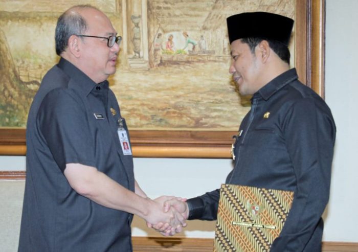 SURABAYATODAY ID, SURABAYA – Penjabat (Pj) Sekretaris Daerah Provinsi Jawa Timur Bobby Soemiarsono menyerahkan surat penunjukan Pelaksana Tugas (Plt) Bupati Sidoarjo kepada Wakil Bupati Sidoarjo Subandi. Penyerahan dilakukan di kantor Gubernur Jawa Timur, Surabaya, Rabu (8/5).
