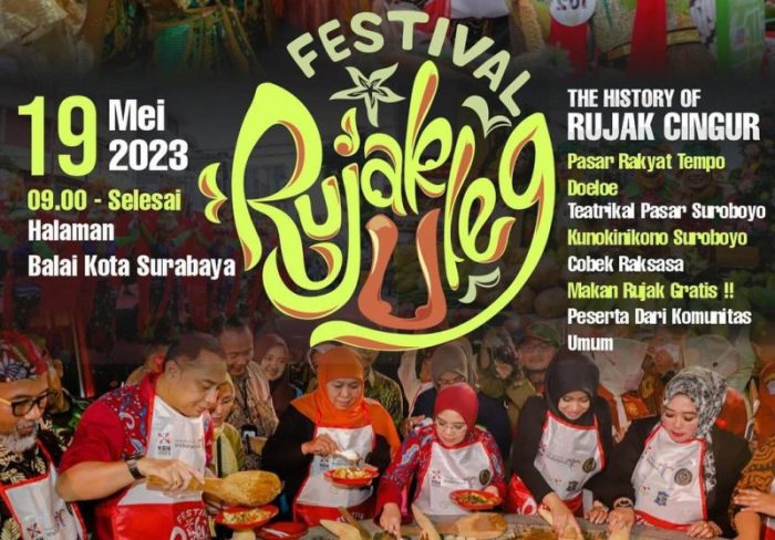 SURABAYATODAY ID, SURABAYA – Pemkot Surabaya segera menggelar Festival Rujak Uleg menyemarakan rangkaian Hari Jadi Kota Surabaya (HJKS) ke-731. Berbeda dari tahun sebelumnya, Festival Rujak Uleg kali ini akan digelar di Taman Surya Balai Kota Surabaya. Event tahunan ini, dihelat pada Minggu (19/5) mulai pukul 09.00 WIB.