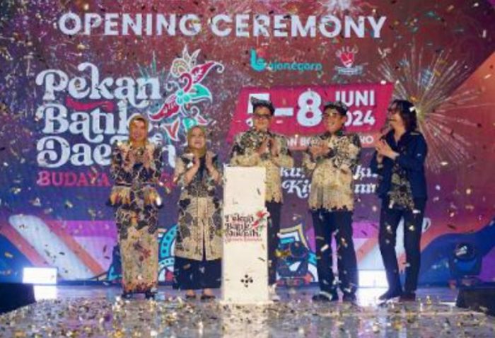 SURABAYATDAY.ID, BOJONEGORO – Opening ceremony Pekan Batik Daerah Budaya Bangsa yang digelar oleh Pemkab Bojonegoro dibuka langsung oleh PJ Gubernur Jawa Timur Adhy Karyono di Alun Alun Bojonegoro, Rabu (5/6). Kegiatan pertama kalinya di Kabupaten Bojonegoro tersebut mengusung tema “Batikku Batikmu, Batik kita Semua” yang akan hingga 8 Juni 2024 mendatang