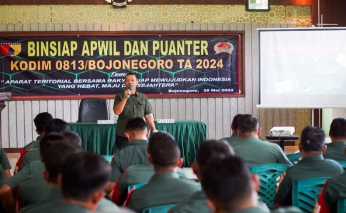 Dalam amanatnya yang dibacakan Pasiter Lettu Kav Sujirman, Dandim 0813 Bojonegoro Letkol Czi Arief Rochman Hakim menyampaikan kegiatan tersebut merupakan program kerja yang rutin dilaksanakan setiap tahun. Harapannya seluruh Aparat Komando Kewilayahan (Apkowil) jajaran Kodim 0813 Bojonegoro menguasai pengetahuan yang terkandung dalam materi Binsiap Apwil dan Puanter serta memiliki kesamaan langkah dan tindakan dalam menjalankan tugas Pembinaan Teritorial (Binter) tingkat perorangan maupun satuan.