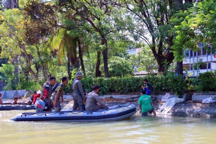 SURABAYATODAY.ID, SURABAYA – Pemkot Surabaya melakukan pengawasan di sepanjang Kalimas, Kelurahan Ngagel, Kecamatan Wonokromo, Senin (17/6). Pengawasan ini untuk mencegah pembuangan limbah rumen dan kotoran hewan kurban ke sungai.