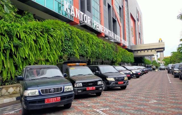 Dokumnetasi puluhan mobil dinas Pemkot Surabaya yang diparkir di gedung Pemkot Surabaya.