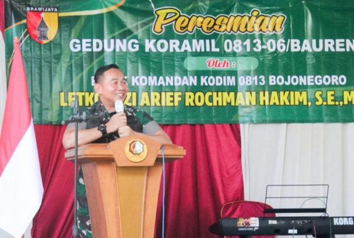Dalam sambutannya Dandim 0813 Bojonegoro Letkol Czi Arief Rochman Hakim mengucapkan terima kasih dan apresiasi penghargaan yang tinggi kepada Danramil beserta jajaran Babinsa Koramil 0813-06/Baureno yang telah menyelesaikan pembangunan gedung baru. Dia berharap, keberadaan Makoramil 06/Baureno ini nantinya bermanfaat mendukung kegiatan dan operasional Satuan jajaran Kodim 0813 Bojonegoro.