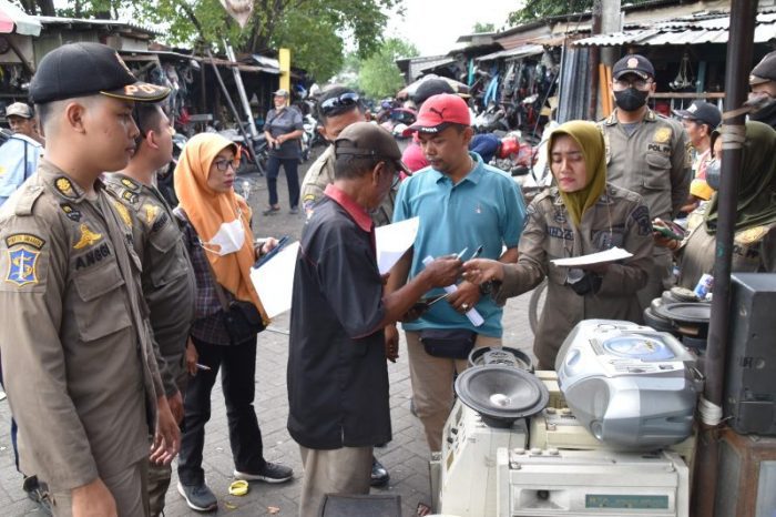 SURABAYATODAY.ID, SURABAYA – Satpol PP Surabaya menggelar sosialisasi kepada para pedagang kaki lima (PKL) terkait larangan berjualan di bahu jalan, di seputaran Pasar Dupak Rukun. Sosialisasi dilaksanakan di pasar yang lebih dikenal dengan nama Pasar Loak itu pada Sabtu (6/7).