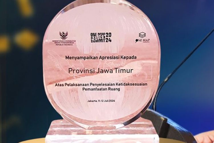 SURABAYATODAY ID, SURABAYA – Provinsi Jawa Timur berhasil mendapatkan penghargaan One Map Policy Better Governance Tahun 2024 dalam Penyelesaian Ketidaksesuaian Pemanfaatan Ruang untuk Pemerintah Daerah Tahun 2024 dari Kementerian Koordinator Bidang Perekonomian Republik Indonesia.