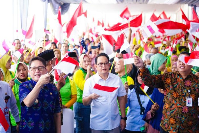 SURABAYATODAY.ID, BOJONEGORO – Pj Gubernur Jatim Adhy Karyono menyalurkan Bantuan Langsung Tunai (BLT) Dana Bagi Hasil Cukai Hasil Tembakau (DBHCHT) tahun 2024 kepada buruh pabrik rokok lintas wilayah Jawa Timur yang digelar di Koperasi Kareb Unit SKT MPS Kapas Bojonegoro, Jumat (19/7). BLT DBHCHT disalurkan kepada 393 orang buruh pabrik lintas wilayah Koperasi Kareb Unit SKT MPS Kapas Bojonegoro.