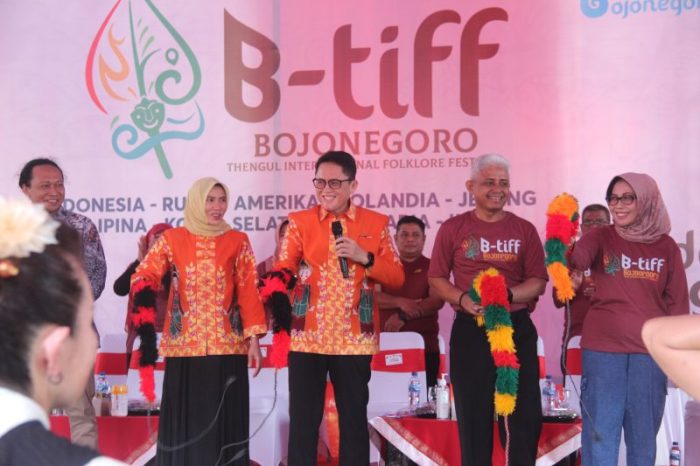 SURABAYATODAY.ID, BOJONEGORO – Parade antar negara (countries parade) mengawali pembukaan Bojonegoro Thengul International Folklore Festival (B-TIFF), Sabtu (20/7) di Jalan P. Mas Tumapel. Parade diikuti delapan delegasi mancanegara yang menyemarakkan pembukaan B-TIFF, hasil kerjasama Pemkab Bojonegoro dengan CIOFF Indonesia.