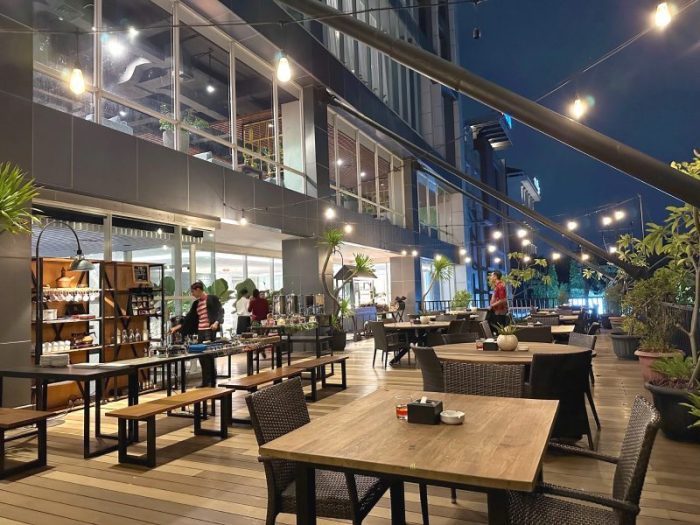Grand Swiss-Belhotel Darmo, Surabaya menghadirkan Angkringan Bintoro yang menawarkan berbagai menu dengan suasana outdoor.