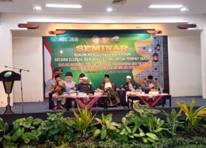SURABAYATODAY ID, SURABAYA – PDAM Surya Sembada bekerja sama dengan Majelis Ulama Indonesia (MUI) Kota Surabaya menggelar seminar bertajuk “Hukum Menggunakan Air PDAM Secara Ilegal dan Berlebihan untuk Tempat Ibadah”, Sabtu (10/8). Acara yang diselenggarakan di aula lantai 5 kantor PDAM Surya Sembada ini dihadiri pengurus MUI tingkat kecamatan se-Kota Surabaya, dalam rangka Milad MUI ke-49, peringatan HUT Kemerdekaan RI ke-79, dan peringatan Tahun Baru Islam 1446 Hijriah.