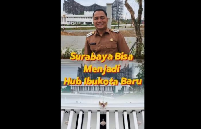 Wali Kota Eri mengatakan, adanya pembangunan IKN justru akan berdampak baik pada perkembangan dan pertumbuhan ekonomi di Kota Surabaya. Ia optimistis, posisi Kota Surabaya bakal semakin strategis dengan keberadaan IKN. Surabaya akan menjadi hub untuk berbagai penunjang IKN, mulai dari logistik, kebutuhan pangan, sektor jasa, jalur tol laut, dan sebagainya.