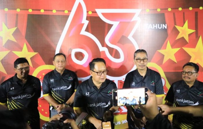 “Hari ini kita merayakan ultah bank Jatim ke-63. Sejatinya ulang tahun bank Jatim tanggal 17 Agustus bersamaan dengan HUT kemerdekaan RI. Nafasnya bank Jatim adalah nafas nasionalisme,” pungkasnya.