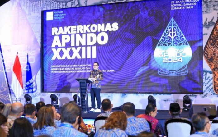 SURABAYATODAY.ID, SURABAYA – Penjabat (Pj) Gubernur Jawa Timur Adhy Karyono menghadiri Rapat Kerja dan Konsultasi Nasional (Rakerkonas) Asosiasi Pengusaha Indonesia (APINDO) ke-33. Rakerkonas ini digelar di Hotel Novotel Samator Surabaya, Kamis (29/8).