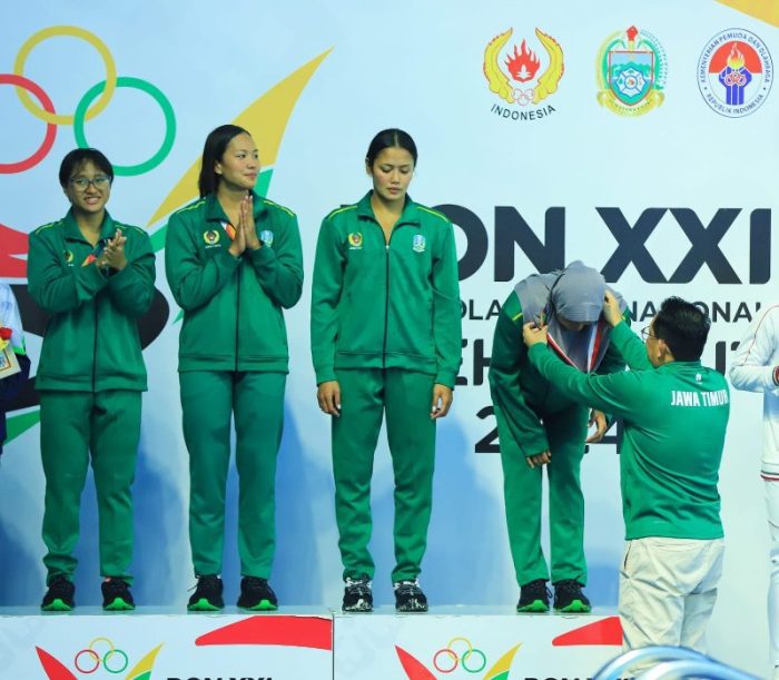 SURABAYATODAY.ID, MEDAN – Penjabat (Pj) Gubernur Jawa Timur Adhy Karyono mengalungkan satu medali emas dan satu medali perak kepada atlet asal Jatim cabang olahraga (cabor) renang. Pengalungan ini diberikan pada atlet renang di ajang Pekan Olahraga Nasional (PON) XXI/2024 di Medan, Sumatera Utara, Sabtu (14/9).