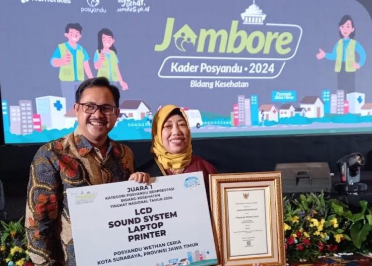 SURABAYATODAY ID, SURABAYA – Posyandu Wethan Ceria Surabaya berhasil meraih Juara 1, kategori Posyandu Berprestasi Tingkat Nasional 2024. Penghargaan tersebut diserahkan secara langsung oleh Menteri Kesehatan (Menkes) Republik Indonesia (RI) Budi Gunadi Sadikin, dalam Jambore Kader Tingkat Nasional 2024, di Trans Convention Centre (TCC), The Trans Luxury Hotel, Jalan Gatot Subroto No. 289 Kota Bandung, Jawa Barat.