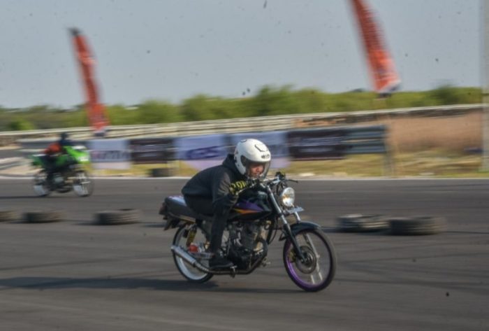 Ia menyebutkan, di acara latihan drag motor bareng ini, semua jenis motor bisa melakukan balapan di trek Sirkuit GBT. “Sepeda motore gak onok batase, gak onok lampune, onok sing reme mburi tok, wis nggak opo nang jero kene pokoke gak mang embong (motornya tidak ada batasan, ada yang nggak ada lampunya, ada yang remnya cuma belakang saja, sudah nggak apa kan hanya di dalam sini (Sirkuit GBT) asalkan tidak di jalan raya,” sebutnya.