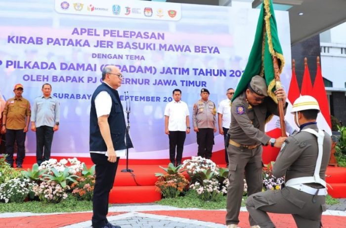 Sementara itu, Kasatpol PP Pemprov Jatim Andik Fadjar Tjahjono bahwa Apel Pelepasan Kirab Pataka ini diikuti oleh ratusan pasukan gabungan dari Satpol PP, Dinas Perhubungan, Polisi, TNI, KPU, Bawaslu, Damkar, BPBD, Linmas, Tagana hingga Pramuka.