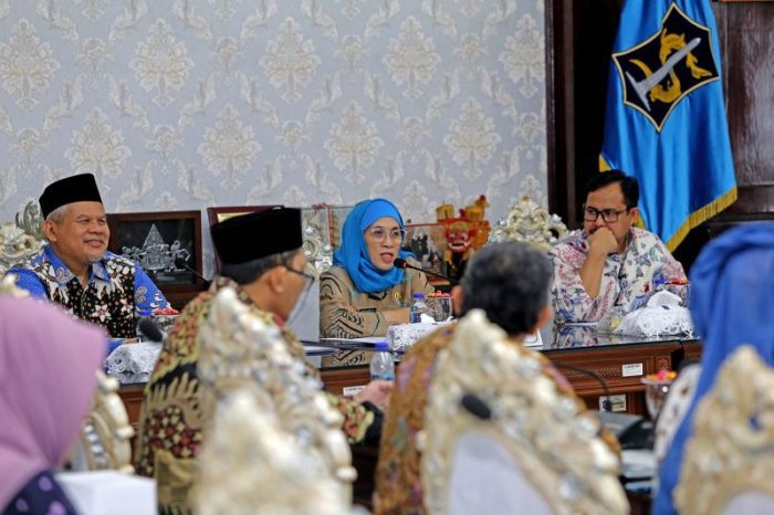 SURABAYATODAY.ID, SURABAYA – Pjs Wali Kota Surabaya, Restu Novi Widiani menyambut kunjungan tim juri Syariah Award 2024 di ruang sidang wali kota, Balai Kota, Jumat (27/9). Syariah Award 2024 merupakan salah program awarding untuk mendorong perekonomian berbasis syariah yang diselenggarakan oleh Pemprov Jawa Timur.