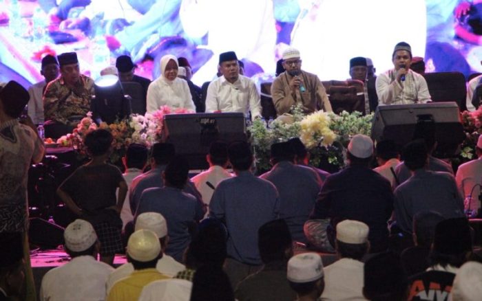 SURABAYATODAY.ID, SURABAYA – Tri Rismaharini, calon gubernur Jawa Timur, menghadiri acara peringatan Maulid Nabi Muhammad SAW yang diselenggarakan oleh Aliansi Madura Indonesia (AMI) di Jalan Pegirian, Surabaya, Sabtu (28/9) malam. Acara bertajuk “AMI Bersholawat” ini dihadiri pula sejumlah tokoh, di antaranya Habib Husein bin Syakieb al-Jufri, Habib Alwy bin Syakieb al-Jufri, dan ustaz M. Nadhif.