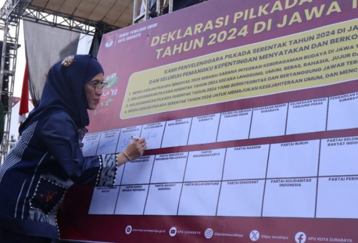 Dalam sambutannya Restu Novi mengatakan bahwa kedatangannya kali ini sebagai bentuk dukungan penuh terhadap penyelenggaraan Pilkada serentak 2024. “Kehadiran saya juga membuktikan bahwa Kota Surabaya bersinergi dengan KPU Kota Surabaya, Badan Pengawas Pemilu (Bawaslu) serta Forum Pemimpin Daerah (Forkopimda) untuk mengamankan Pilkada serentak di Kota Pahlawan,” ujarnya.