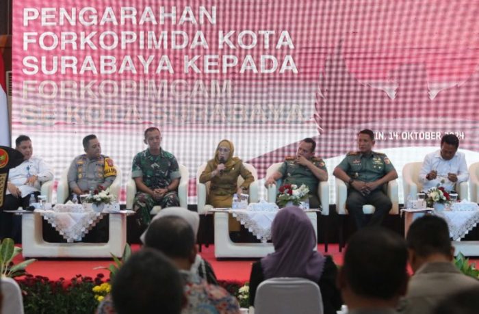 SURABAYATODAY.ID, SURABAYA – Penjabat Sementara (Pjs) Wali Kota Surabaya Restu Novi Widiani bersama Forum Koordinasi Pimpinan Daerah (Forkopimda) Kota Surabaya, memberikan pengarahan kepada Forum Koordinasi Pimpinan Kecamatan (Forkopimcam) terkait persiapan Pilihan Kepala Daerah (Pilkada) serentak tahun 2024. Pengarahan dilaksanakan di Graha Sawunggaling, Senin (14/10).