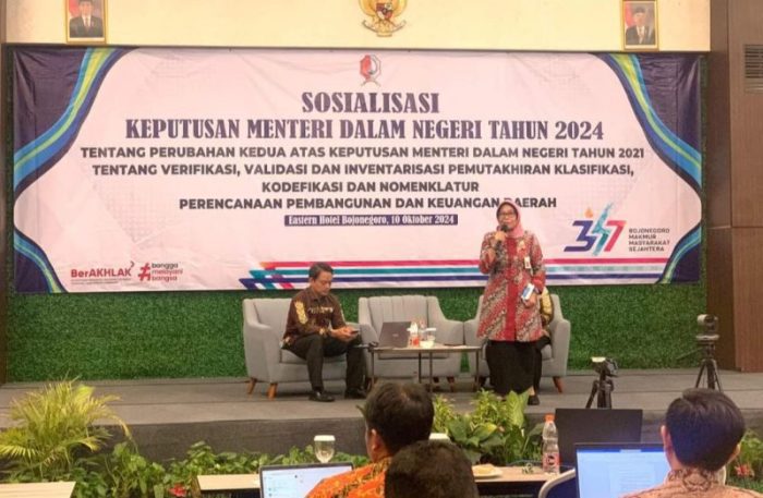 SURABAYATODAY.ID, BOJONEGORO – Pemerintah Kabupaten Bojonegoro menyelenggarakan sosialisasi Keputusan Menteri Dalam Negeri nomor 900.1.15.5-3406 tahun 2024 tentang Perubahan Kedua Atas Keputusan Menteri Dalam Negeri tahun 2021 tentang Hasil Verifikasi, Validasi dan Inventarisasi Pemutakhiran Klasifikasi, Kodefikasi dan Nomenklatur Perencanaan Pembangunan dan Keuangan Daerah. Kegiatan yang diikuti para kepala OPD, penyusun program dan kegiatan se-Kabupaten Bojonegoro ini dilaksanakan di Eastern Hotel Bojonegoro, Kamis (10/10).