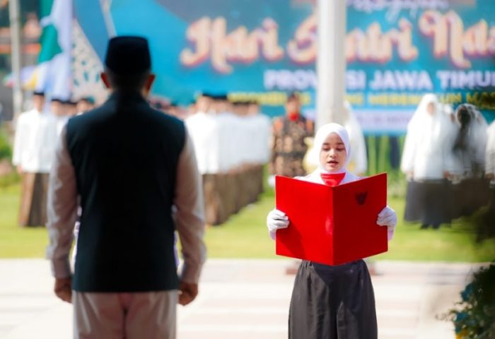 SURABAYATODAY ID, SURABAYA – Penjabat (Pj) Gubernur Jawa Timur Adhy Karyono memimpin Apel Peringatan Hari Santri di halaman Gedung Negara Grahadi, Surabaya, Selasa (22/10). Dalam kesempatan ini, secara khusus Adhy berpesan agar seluruh santri Jawa Timur memiliki kemampuan multitalenta sehingga bisa berprofesi apa saja dan dimana saja.