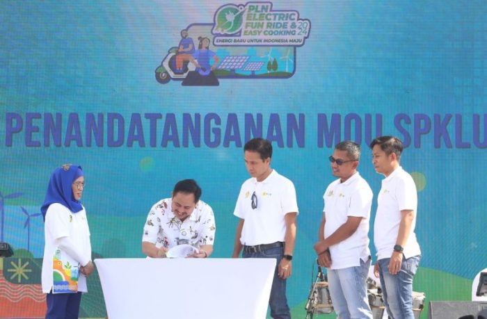 SURABAYATODAY.ID, SURABAYA – Pemerintah Kota (Pemkot) Surabaya akan menambah Stasiun Kendaraan Listrik Umum (SPKLU) di beberapa titik Kota Pahlawan sebagai langkah optimalisasi pengunaan kendaraan listrik. Hal ini tertuang dalam penandatanganan MoU/Nota Kesepakatan yang dilakukan Penjabat Sementara (Pjs) Wali Kota Surabaya Restu Novi Widiani bersama dengan Perusahaan Listrik Negara (PLN) di Balai Pemuda, Jumat (25/10).