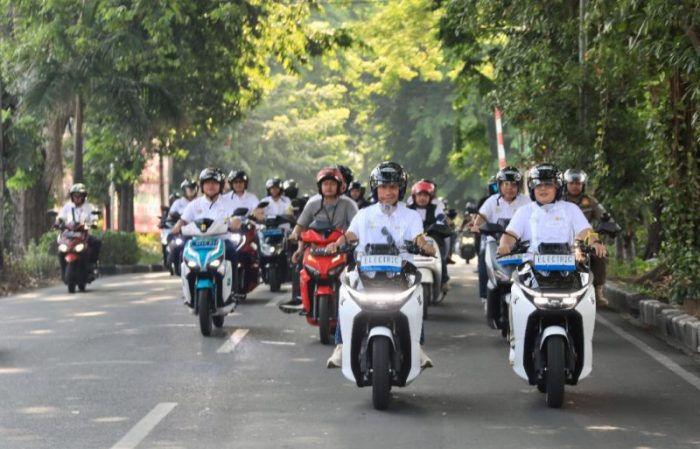 SURABAYATODAY.ID, SURABAYA – Pemerintah Provinsi Jawa Timur bersama stakeholder terus berupaya mewujudkan Jawa Timur ramah lingkungan menuju Net Zero Emissions di tahun 2060. Sebagai bentuk nyata upaya tersebut, Pj Gubernur Jatin Adhy Karyono bersama PLN dalam kegiatan konvoi motor listrik di kantor PLN UID Jatim., Jumat (25/10).