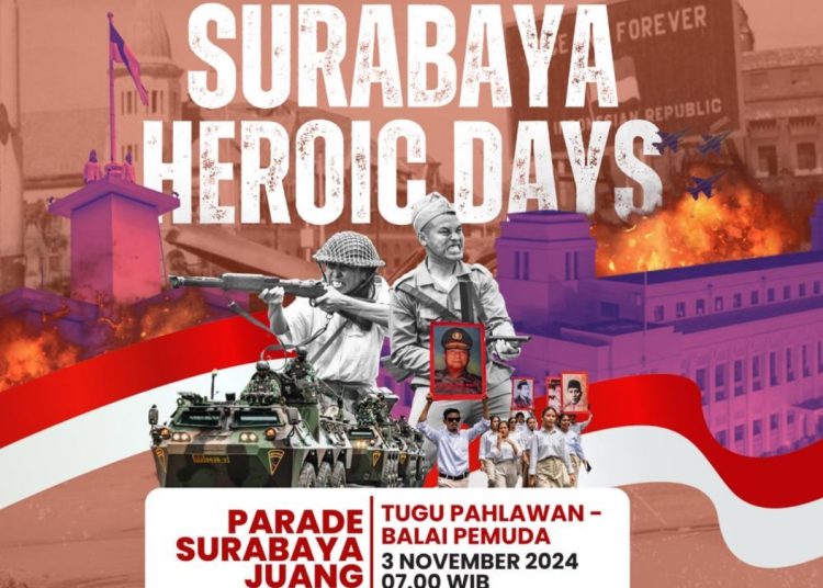 SURABAYATODAY.ID, SURABAYA – Pemerintah Kota (Pemkot) Surabaya menggelar berbagai kegiatan dalam menyambut Hari Pahlawan, pada November 2024 mendatang. Rangkaian acara tersebut dikemas dalam tajuk Surabaya Heroic Days 2024. Nantinya, pemkot akan menghadirkan pemeran, pertunjukan seni, video mapping, Parade Surabaya Juang, hingga Cross Musea yang menampilkan koleksi dari berbagai museum di Indonesia.