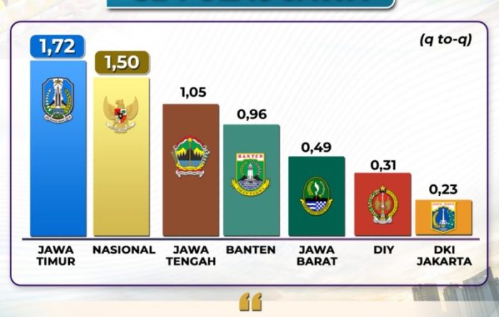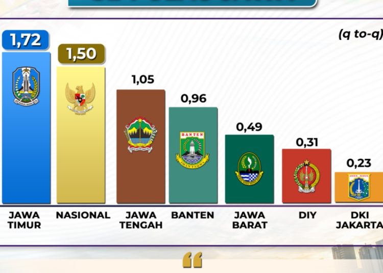 SURABAYATODAY.ID, SURABAYA – Menuju penghuung tahun 2024, laju pertumbuhan ekonomi di Provinsi Jawa Timur kembali mencatatkan pergerakan positif. Berdasarkan rilis Badan Pusat Statistik (BPS) terbaru, Ekonomi Jawa Timur pada Triwulan III-2024 tumbuh sebesar 1,72% (q-to-q) dibandingkan Triwulan II-2024. Capaian impresif ini mampu membuat Jawa Timur sebagai provinsi dengan pertumbuhan ekonomi tertinggi se-Pulau Jawa.