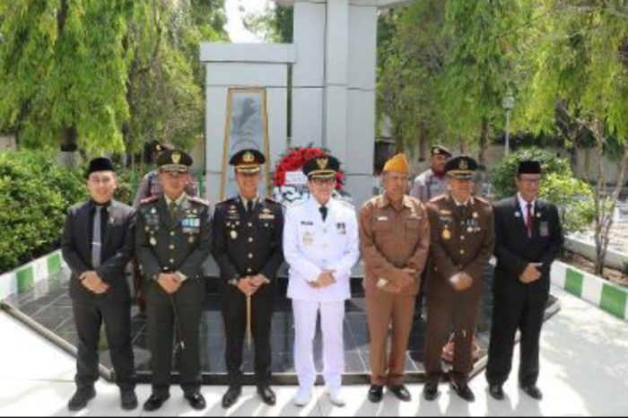 Selanjutnya, usai upacara Pj Bupati Adriyanto dan seluruh rombongan bergegas menuju ke taman makam pahlawan. Mereka melaksanakan tabur bunga.