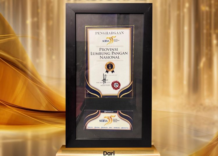 SURABAYATODAY.ID, JAKARTA – Pemerintah Provinsi (Pemprov) Jawa Timur memperoleh Penghargaan Surya Awards kategori Provinsi Lumbung Pangan Nasional. Penghargaan diberikan dalam acara peringatan HUT ke-35 Harian Surya di Dyandra Convention Center Surabaya, Selasa (12/11) siang. Penghargaan diterima Penjabat (Pj) Sekretaris Daerah Provinsi Jawa Timur Bobby Soemiarsono.