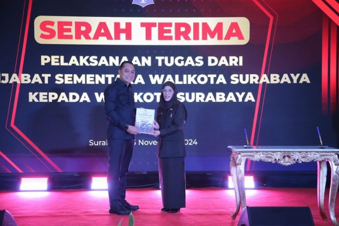 SURABAYATODAY.ID, SURABAYA – Eri Cahyadi kembali menjabat sebagai wali kota Surabaya. Ini setelah masa jabatan Pjs Wali Kota Surabaya, Restu Novi Widiani hari ini resmi berakhir, Sabtu (23/11). Restu pun sudah melakukan serah terima pelaksanaan tugas kepala daerah kembali kepada Eri Cahyadi.