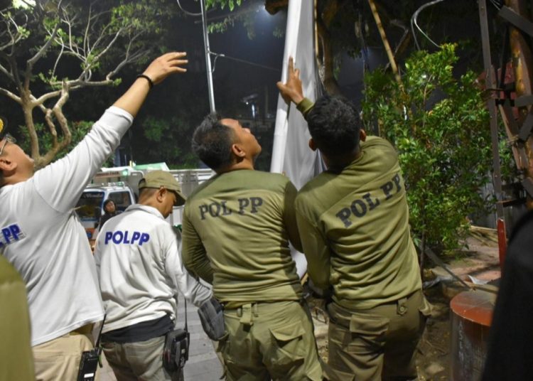 SURABAYATODAY.ID, SURABAYA – Pemerintah Kota (Pemkot) Surabaya bersama Komisi Pemilihan Umum (KPU), dan Badan Pengawas Pemilu (Bawaslu) Kota Surabaya, menggelar operasi penertiban Alat Peraga Kampanye (APK), Minggu (24/11) dini hari. Sebelum melakukan penertiban tersebut, Satpol PP Surabaya bersama KPU, dan Bawaslu Kota Surabaya terlebih dahulu melakukan Apel Pasukan Pengamanan (APP), Sabtu (23/11) malam.