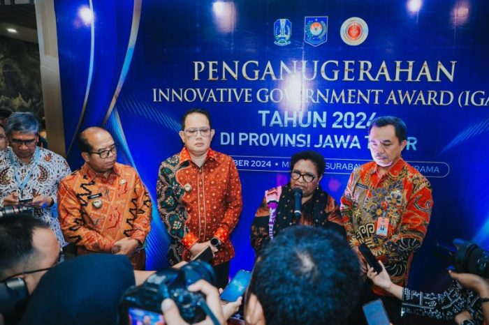 SURABAYATODAY.ID, SURABAYA – Jawa Timur menjadi provinsi terinovatif dalam ajang penganugerahan Innovative Government Awards (IGA) 2024. Penganugerahan itu diselenggarakan di Mercure Surabaya Grand Mirama Hotel, Kamis (5/12).