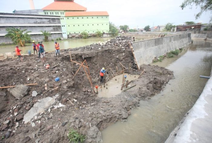 Ia pun meminta DSDABM Surabaya membangun plengsengan karena ada penyempitan salurah air. Dengan dibangun plengsengan, harapannya air bisa tertahan dan tidak menyebabkan banjir. “ Dulu seleher, sekarang perlahan drastis, kalau banjir cuma sampai mata kaki. Tapi saya tidak mau ada banjir jadi sungai kecil tadi saya kasih plengsengan,” ungkap dia.