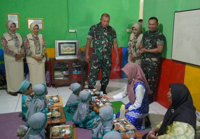 Disampaikan juga bahwa kegiatan tersebut sebagai wujud dukungan program prioritas Presiden Prabowo Subianto dan Wakil Presiden Gibran Rakabuming Raka. “Kegiatan kali ini masih bersifat uji coba. Makan sehat dan bergizi sebanyak 225 porsi secara gratis itu kita berikan kepada para siswa TK Kartika IV-47, TK Bustanul Anfal dan SDN Ledok Wetan 1,” jelas Letkol Czi Arief Rochman Hakim.