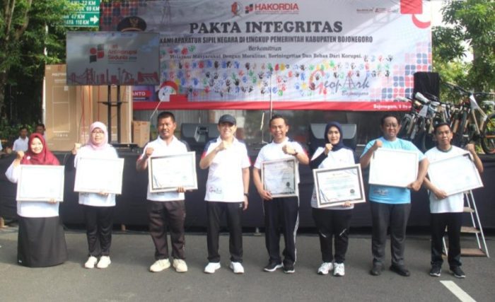 SURABAYATODAY.ID, BOJONEGORO – Puncak peringatan Hari Antikorupsi Sedunia (Hakordia) di Kabupaten Bojonegoro, Selasa (17/12) berlangsung meriah. Kegiatan dipusatkan di Jalan Mas Tumapel Bojonegoro.