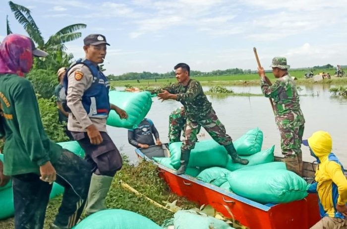 SURABAYATODAY.ID, BOJONEGORO – Jajaran Babinsa Koramil 10/Kanor Kodim 0813 Bojonegoro, bersama anggota Bhabikamtibmas, BPBD, BBWS, perangkat desa dan masyarakat bergerak cepat melakukan perbaikan tanggul di Desa Kedungprimpen Kecamatan Kanor Kabupeten Bojonegoro. Tanggul tersebut jebol akibat tingginya debit air Kali Avour Ingas, serta meningkatnya elevasi tinggi muka air Sungai Bengawan Solo.