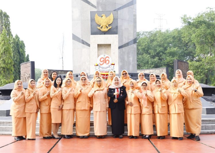 Plt Ketua DWP Provinsi Jawa Timur Fitri Artuti Bobby Soemiarsono memimpin Upacara Ziarah Tabur Bunga peringatan Hari Ibu ke-96 di TMP 10 November Surabaya, Rabu (18/12).