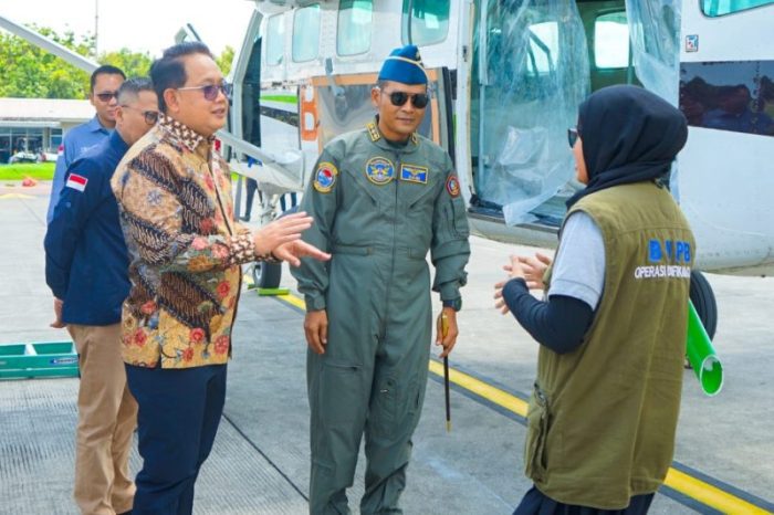 Usai dari BMKG, Adhy berkesempatan meninjau langsung pesawat Cesna Karavan 208B nomor registrasi PKSNN yang digunakan untuk OMC di Base Ops Lanudal Juanda. Melalui pesawat ini, sebanyak satu ton garam dapur (NaCl) atau kalsium klorida (CaCl2) ditebar Tim OMC di langit perairan Madura.